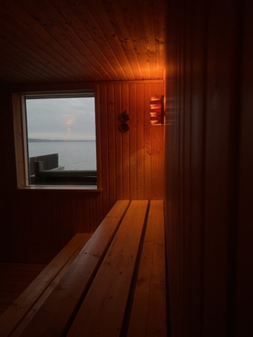Ved ildsjæles og bådlaugets hjælp fik vi, med tiden, både badebro og en dejlig sauna.